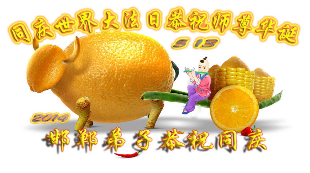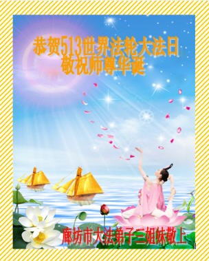 河北省邯郸一大法弟子恭贺法轮大法洪传二十二周年暨伟大师尊华诞