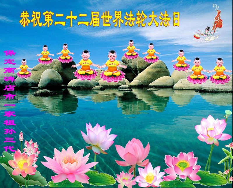 河北省保定市高碑店市一家祖孙三代恭祝第十五届世界法轮大法日!