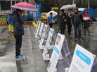 台湾法轮功学员在台北火车站举办摄影展暨反迫害征签,图为台北车站"正法之路"摄影展