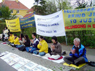 大法弟子在中国驻丹麦使馆前及哥本哈根市中心炼功请愿