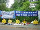 大法弟子在中国驻丹麦使馆前及哥本哈根市中心炼功请愿