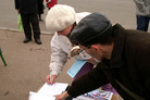 法轮功学员在乌克兰杰尔仁斯科揭露中共的暴行.图为人们纷纷签名谴责中共的暴行.2007-12-15