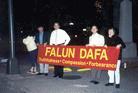 法轮功学员在中领馆前 集会,纪念反迫害十九周年。