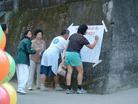 法轮功学员在德国巴伐利亚州科堡市街头首次上演德语审江戏,并介绍法轮功真相--行人纷纷在征签表上签字