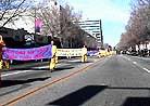 【明慧网】 2001年1月27-28日,旧金山湾区学员参加了在圣荷西举办的越南人春节庆祝活动。学员们准备了越南文的洪法传单和横幅,并有会越语的学员现场介绍。两天中传单多次加印,又被发放一空。28日的游行中大法的队伍引人瞩目,沿途观众有70%-80%都欣然接受洪法传单。图为游行队伍。