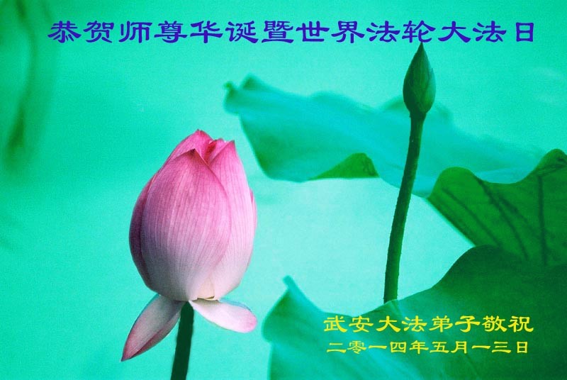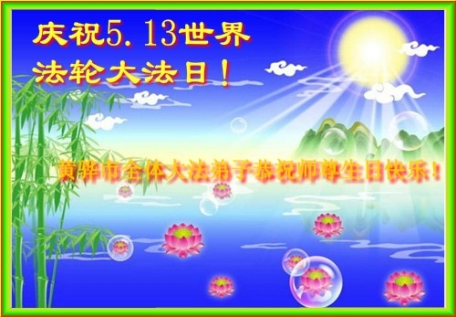 河北省邯郸一大法弟子恭贺法轮大法洪传二十二周年暨伟大师尊华诞