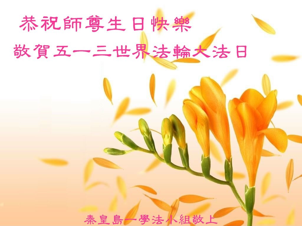 河北省秦皇岛一学法小组大法弟子恭贺师尊生日快乐!普天同庆5.13世界法轮大法日!