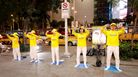法轮功学员每天在台北一零一大楼对面的信义广场炼功