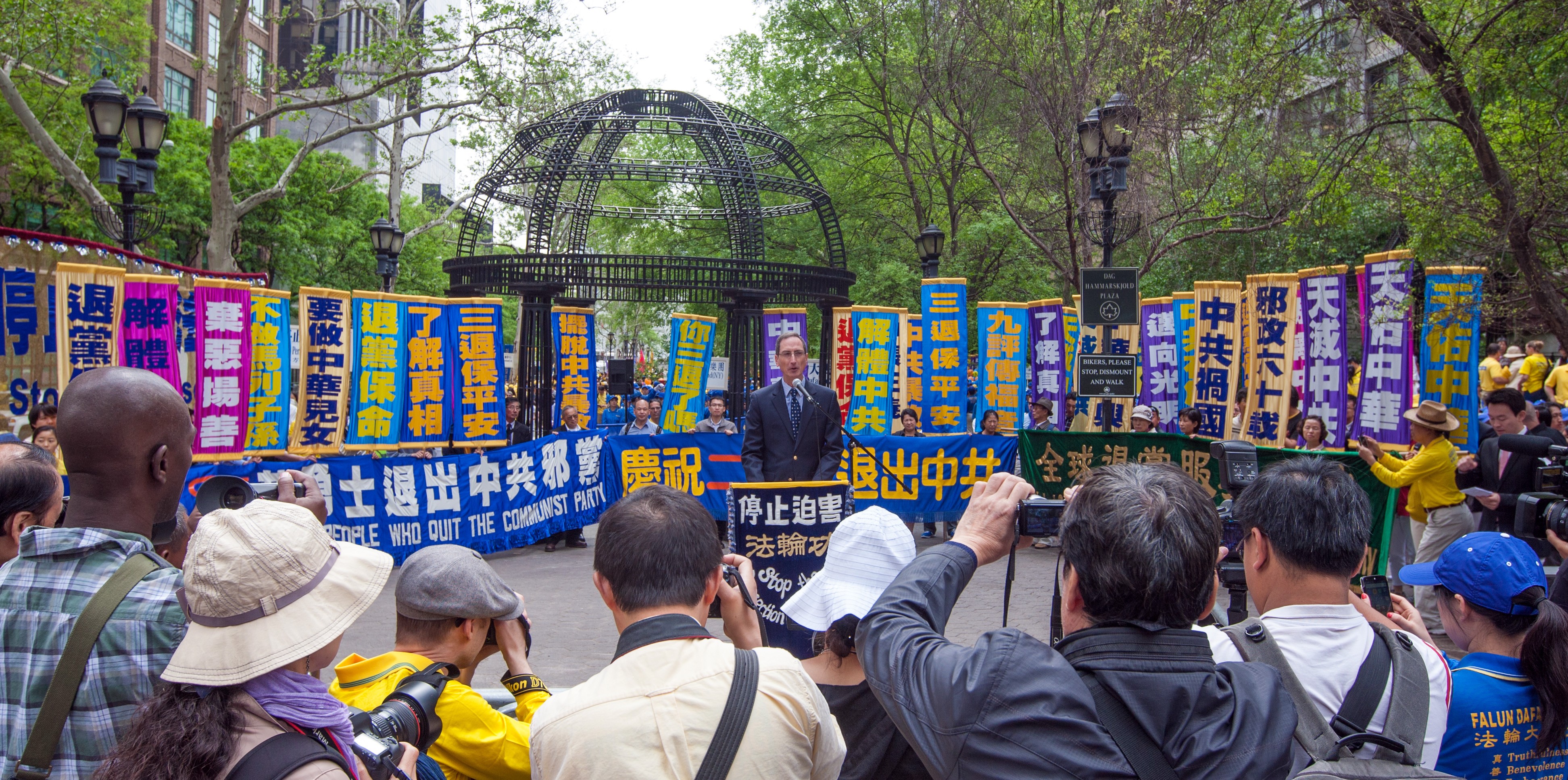法轮功学员在联合国广场公园举行集会,贺两亿人退出中共并庆祝法轮大法日