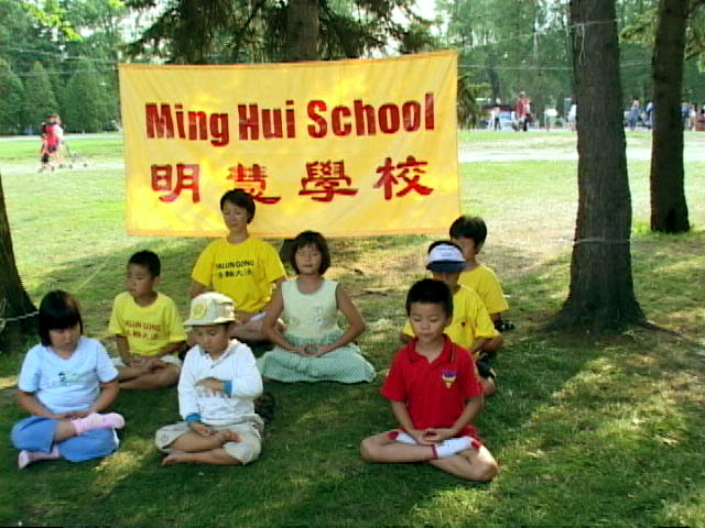 加拿大明慧学校蒙特利尔分校正式开学时小学员们在公园炼功 加拿大 蒙特利尔 2003-8