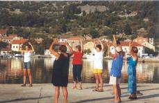在克罗地亚的IZ岛举办的法轮功学习班上新老学员集体炼功 克罗地亚 2003-6