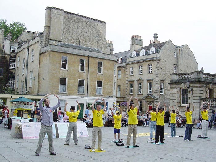 法轮功学员在英国旅游名城巴斯集体炼功 英国 巴斯 2003-8