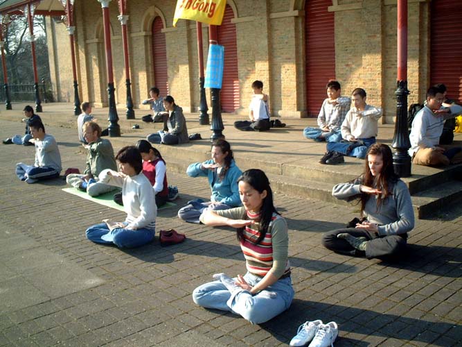 英国法轮功学员在英格兰北部希顿公园炼功洪法 英国 英格兰 2003-3