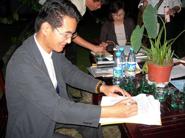 台湾云林县谴责港府暴力遣返并签署加入CIPFG人权圣火图为议员刘建国签署2007-7-4