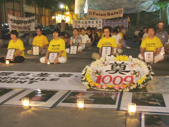 蒙特利尓法轮功学员在法轮功遭无理迫害5年之际烛光守夜,悼念因坚持真善忍信仰而被迫害致死的同修 加拿大 2004-7-20