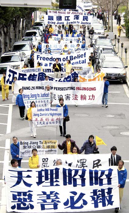 世界各国学员举行旧金山正法之路大游行 图为呼吁制止迫害部分