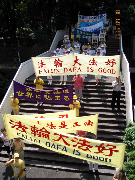 7.20六周年日本学员呼吁停止迫害 图为市中心的游行引起公众关注
