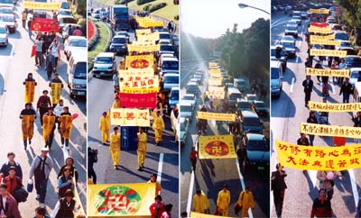日本法轮功学员游行请愿,要求江泽民政府停止对法轮功的镇压.