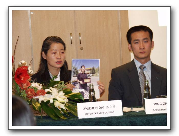 Two Plaintiffs in the Lawsuit Filed against Jiang in Germany Attending a Press Conference on the Lawsuit
